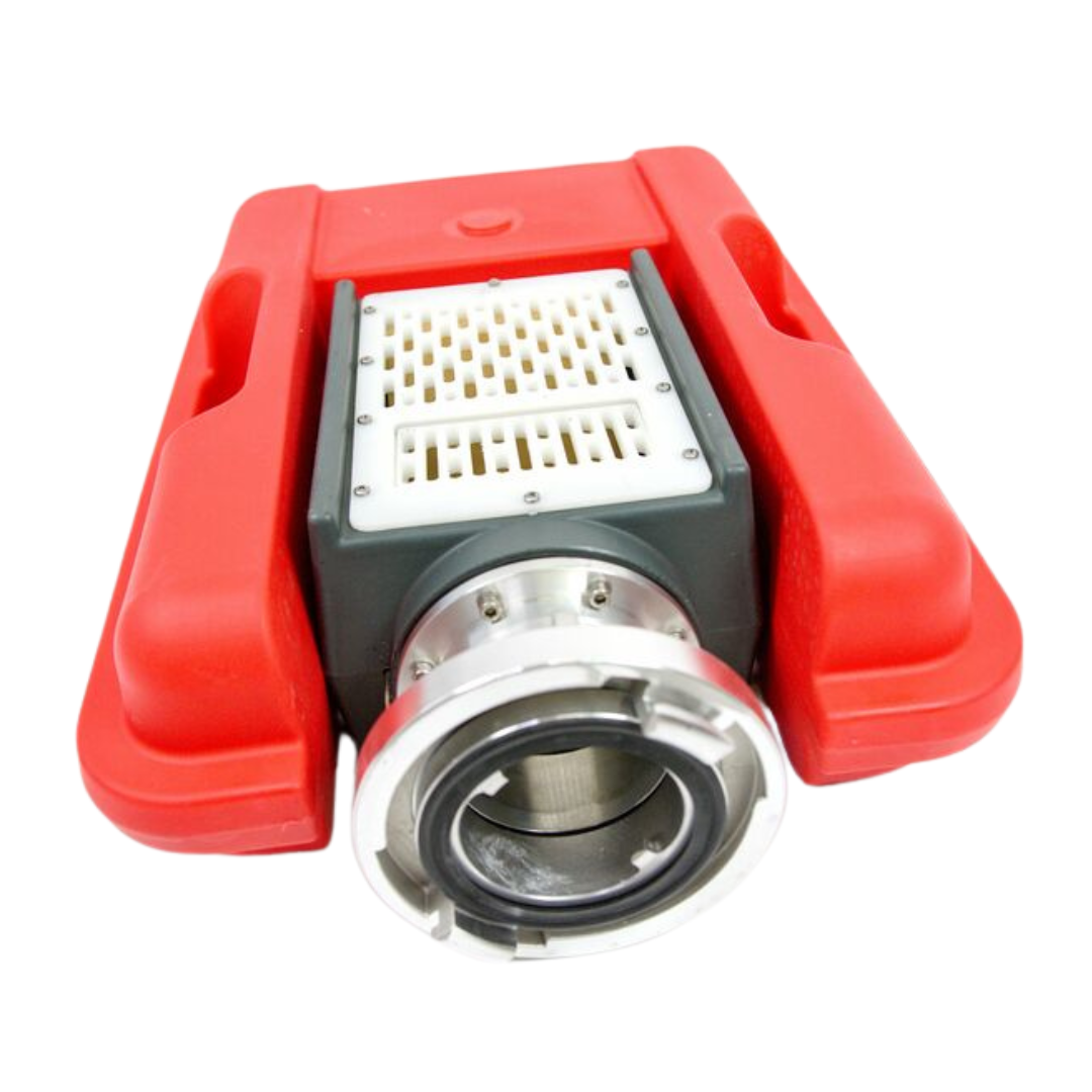The ZHT AMPHIBIO MAXI is a compact yet powerful floating suction cart designed for high-efficiency water intake. With an impressive flow capacity of 2,700 L/min, it features a rotating suction chamber that stays level during operation, ensuring optimal performance even with heavy suction hoses. Its built-in non-return valve prevents backflow and enables water to be drawn back from the line with ease. Weighing just 10 kg and measuring 790 x 550 x 200 mm, it’s easy to handle and compatible with various coupling sizes, making it an essential tool for emergency services and firefighting operations.
