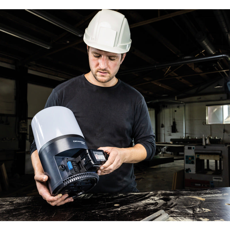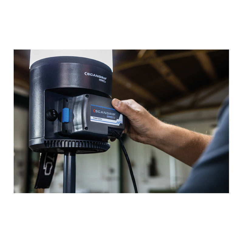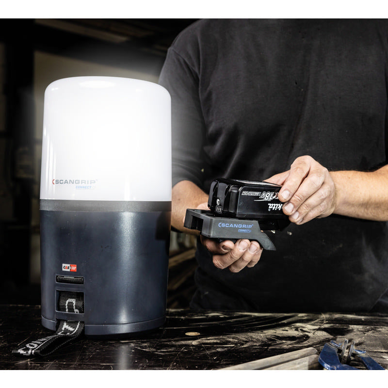 AREA 6 CONNECT is a battery powered work light compatible with METABO / CAS battery system 18 V and all other 18 V/20 V battery packs from leading power tool brands by using the SCANGRIP CONNECTOR. In addition, the SCANGRIP POWER SUPPLY can be used for direct power providing unlimited availability to light.