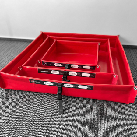 The Collapsible Flexible Utility Tray FASTER is a durable and adaptable solution designed for quick containment of hazardous liquid leaks and support in various maintenance and operational tasks. Crafted from high-strength PES/PVC fabric, it offers excellent chemical resistance, making it suitable for catching acids, oils, alkalis, and other hazardous substances.