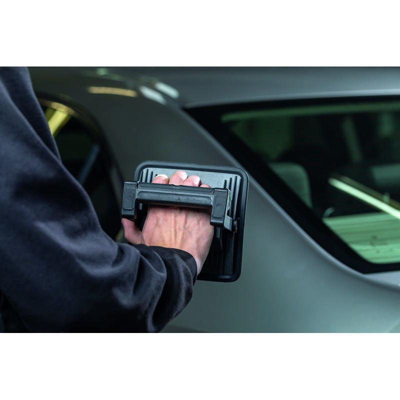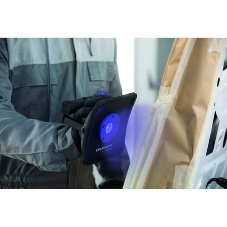 The NOVA-UV S is a high-performance rechargeable UV LED floodlight designed for rapid curing of large surface areas. Ideal for professionals in auto body repair, detailing, and industrial coating, this compact tool features powerful UV output, long battery life, and a built-in timer (1–5 minutes) for precise application control.