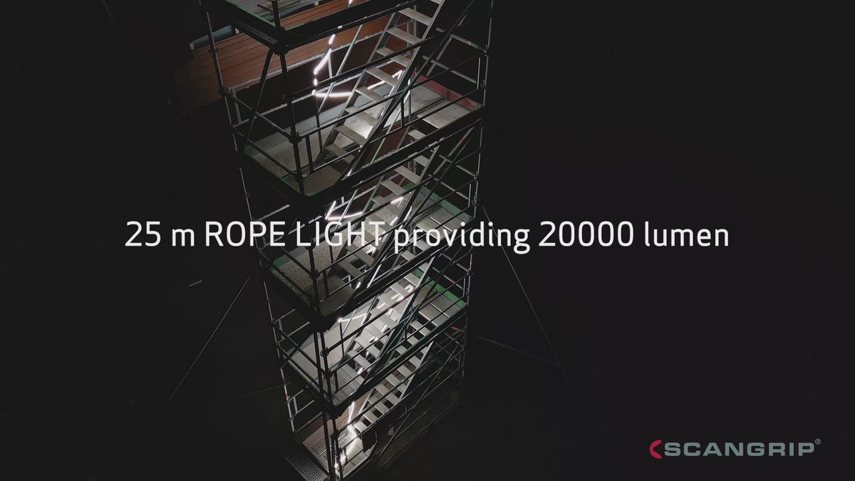The SCANGRIP ROPE LIGHT is the ultimate lighting solution for demanding construction and industrial environments. Measuring 25 meters in length and delivering an impressive 20,000 lumens, this low-voltage (48V DC) light rope ensures optimal illumination for both orientation and task-specific work. Whether you’re working inside a tunnel, tank, stairwell, or temporary workspace, the ROPE LIGHT offers unparalleled flexibility and safety.