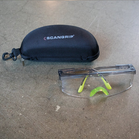 The UV Protection Glasses come packaged in a durable protective case to ensure long-lasting use and safe storage. They are also included with the SCANGRIP UV-GUN and are fully compatible with all SCANGRIP UV-Curing work lights, making them a flexible and practical addition to your toolkit.