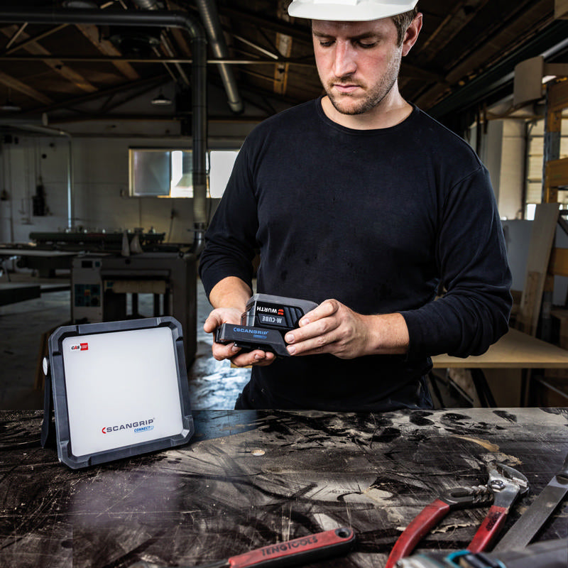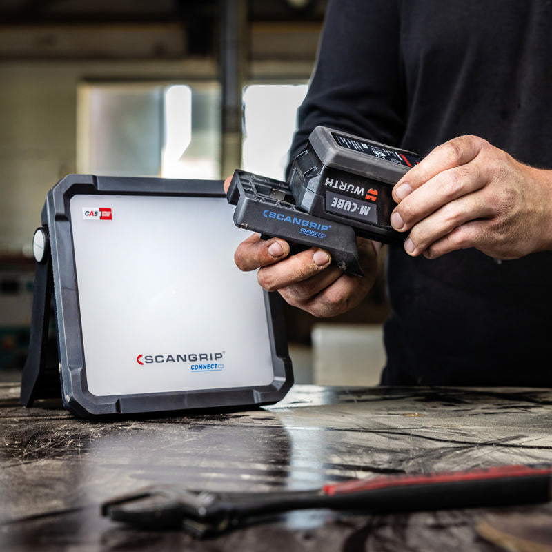 VEGA 2 CONNECT is compatible with METABO / CAS battery system 18 V and all other 18 V/20 V battery packs from leading power tool brands by using the SCANGRIP CONNECTOR. In addition, the SCANGRIP POWER SUPPLY can be used for direct power providing unlimited availability to light.