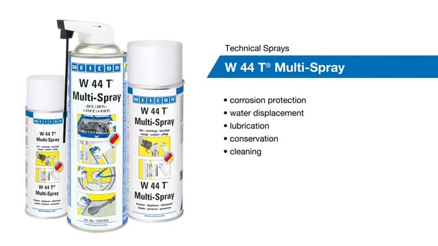 WEICON W 44 T is a multifunctional solution that combines corrosion protection, water displacement, lubrication, conservation, and cleaning in one powerful formula. Thanks to its outstanding creeping capacity, it loosens seized threads, bolts, and fittings while dissolving rust. It also dispels moisture from electrical contacts, preventing tracking currents, and aids in starting wet motors. The product eliminates squeaky noises from hinges, bearings, and joints. It cleans metal surfaces and leaves behind a razorthin protective film that doesn’t attract dust or smear. Perfect for maintaining and preserving tools, machines, and equipment. A must-have for industrial and home use!