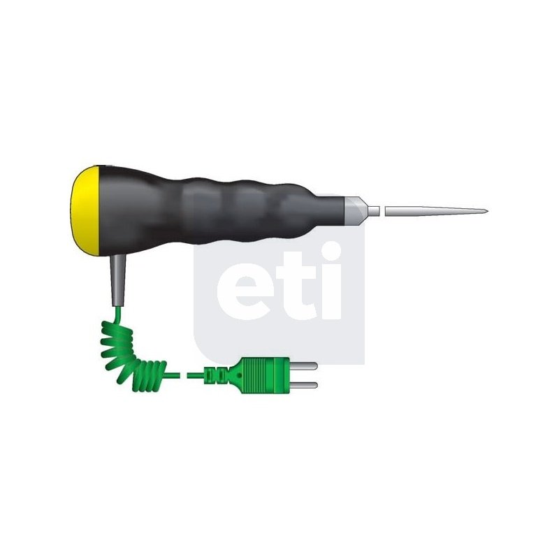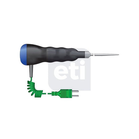 This waterproof stainless steel penetration probe, rated IP67, combines strength and versatility with a robust ribbed handle featuring a colour-coded end cap—offered in a selection of six different colours. Designed for general-purpose applications involving liquids, semi-solids, and granular materials, these temperature probes provide quick response times of less than three seconds. The probe's temperature range spans from -75 to 250 °C, with dimensions measuring 3.3 x 130mm. When connected to an instrument, this probe achieves a waterproof rating of IP67.